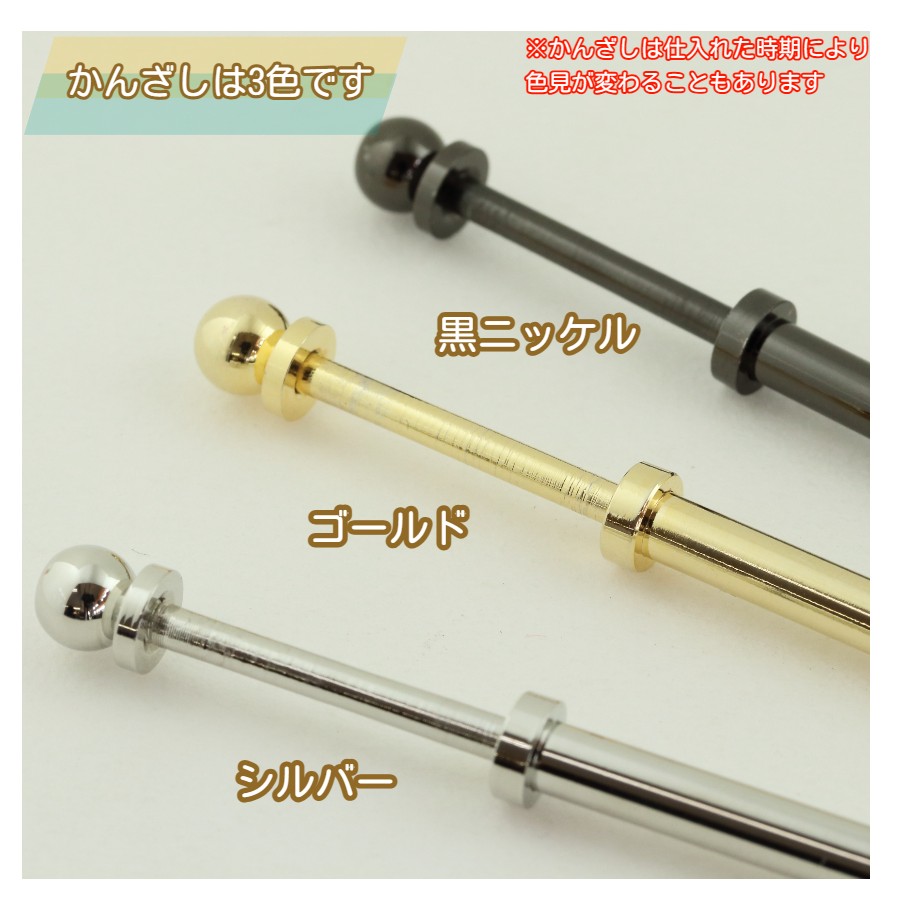 *かんざしの色は3色あり ゴールド・シルバー・黒ニッケルになります。どれもメッキです
