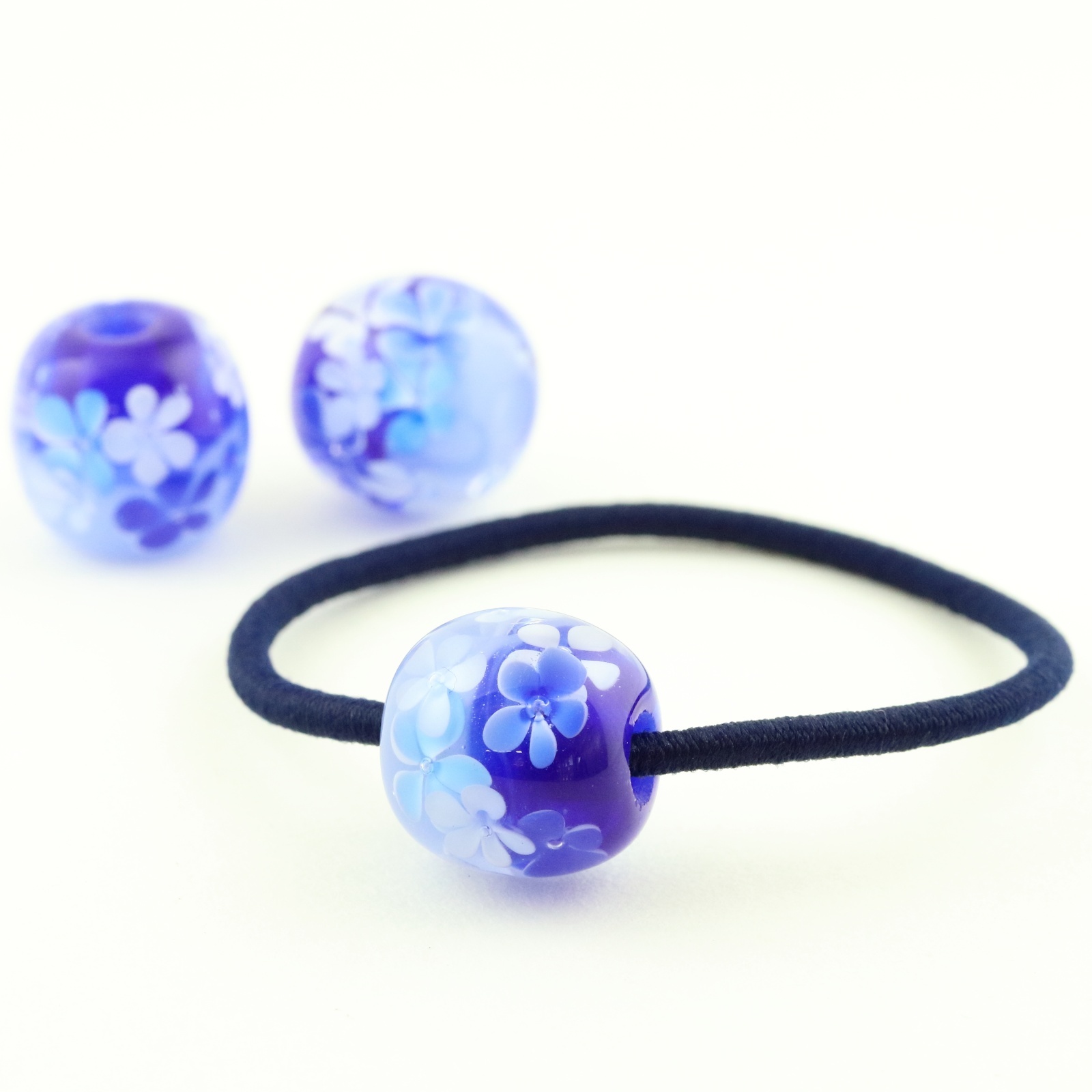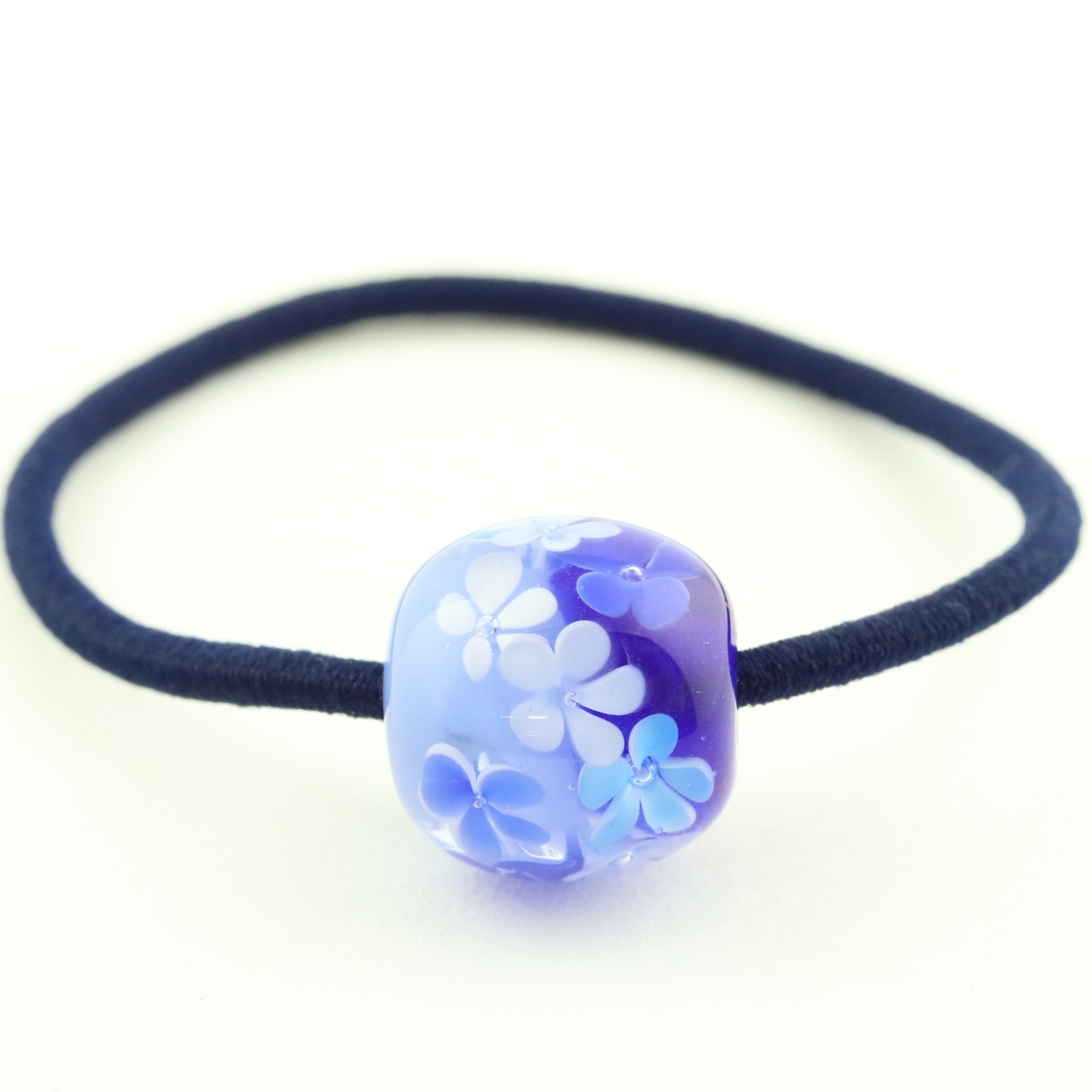 《お花畑のとんぼ玉(青)ヘアゴム》