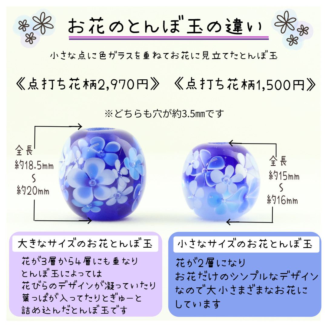 小さな点をいくつも重ねお花に見立てたとんぼ玉