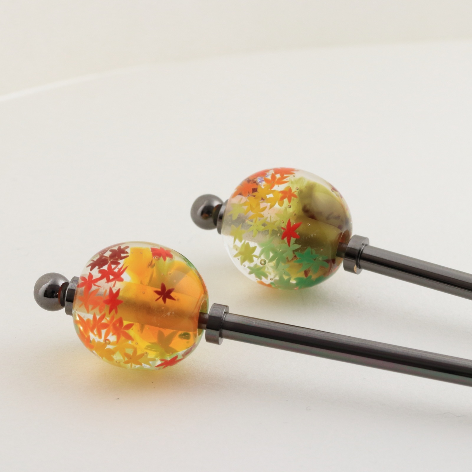 秋色もみじ 緑と紅で奏でる季節のグラデーション〜かんざし編〜