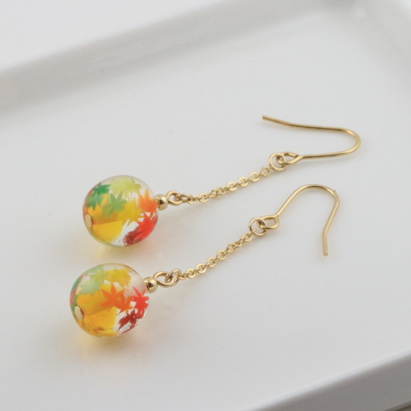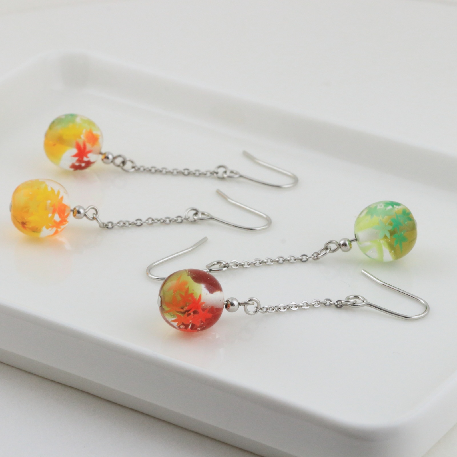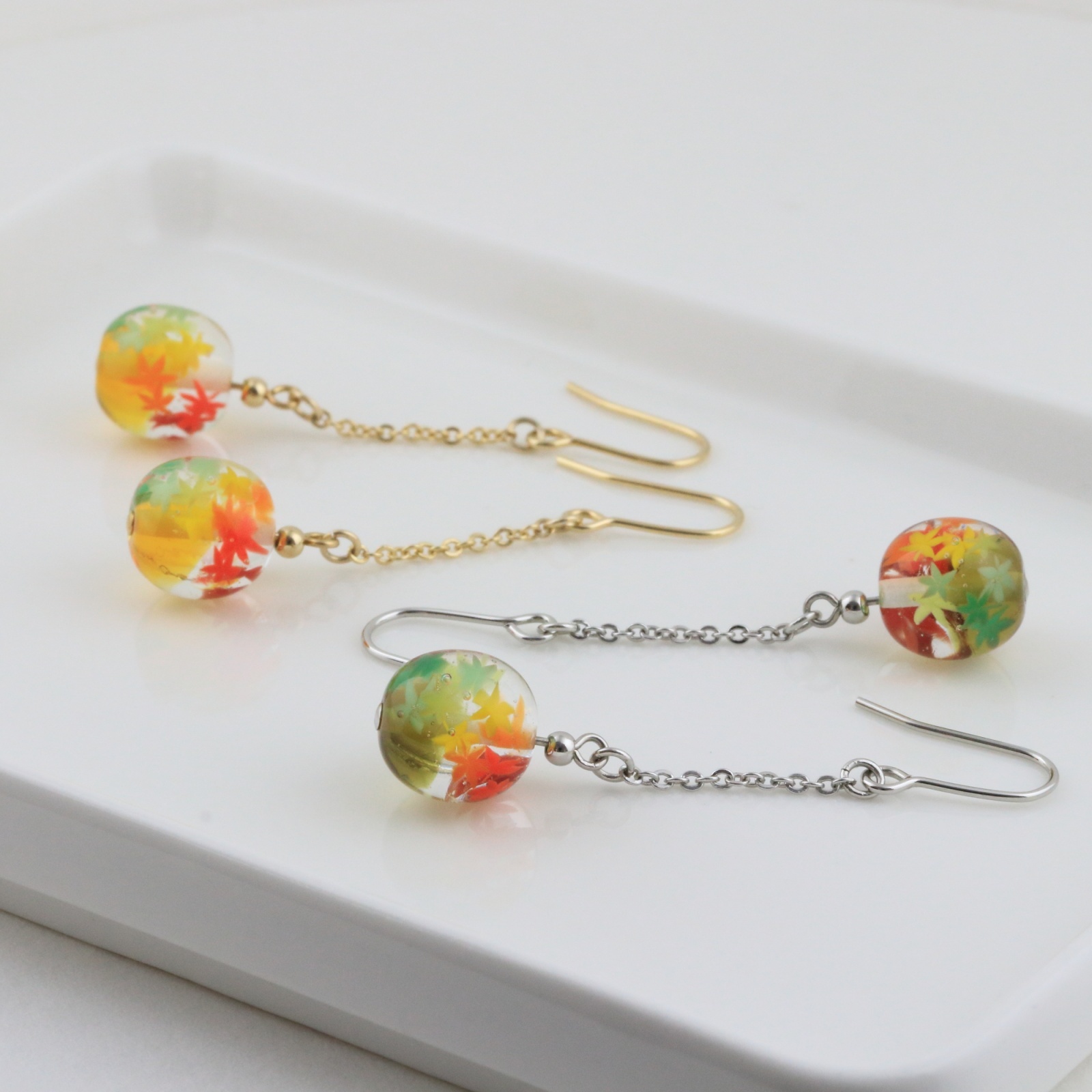 にじいろもみじ|秋の七色グラデーションで描くミニアチュール〜チェーンピアス〜【イヤリング・ピアス変更可】