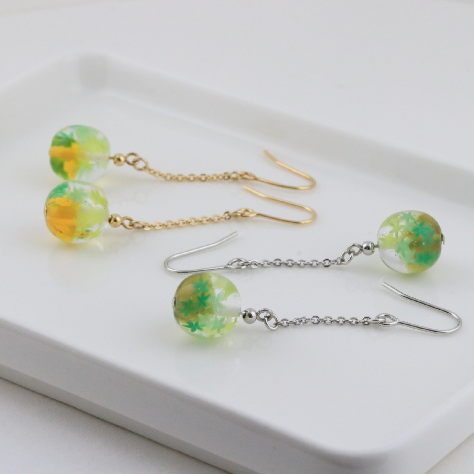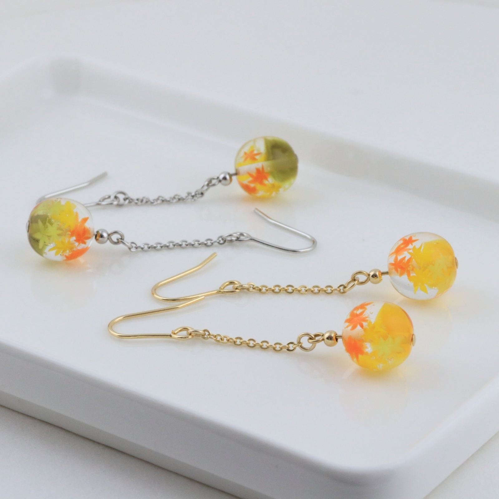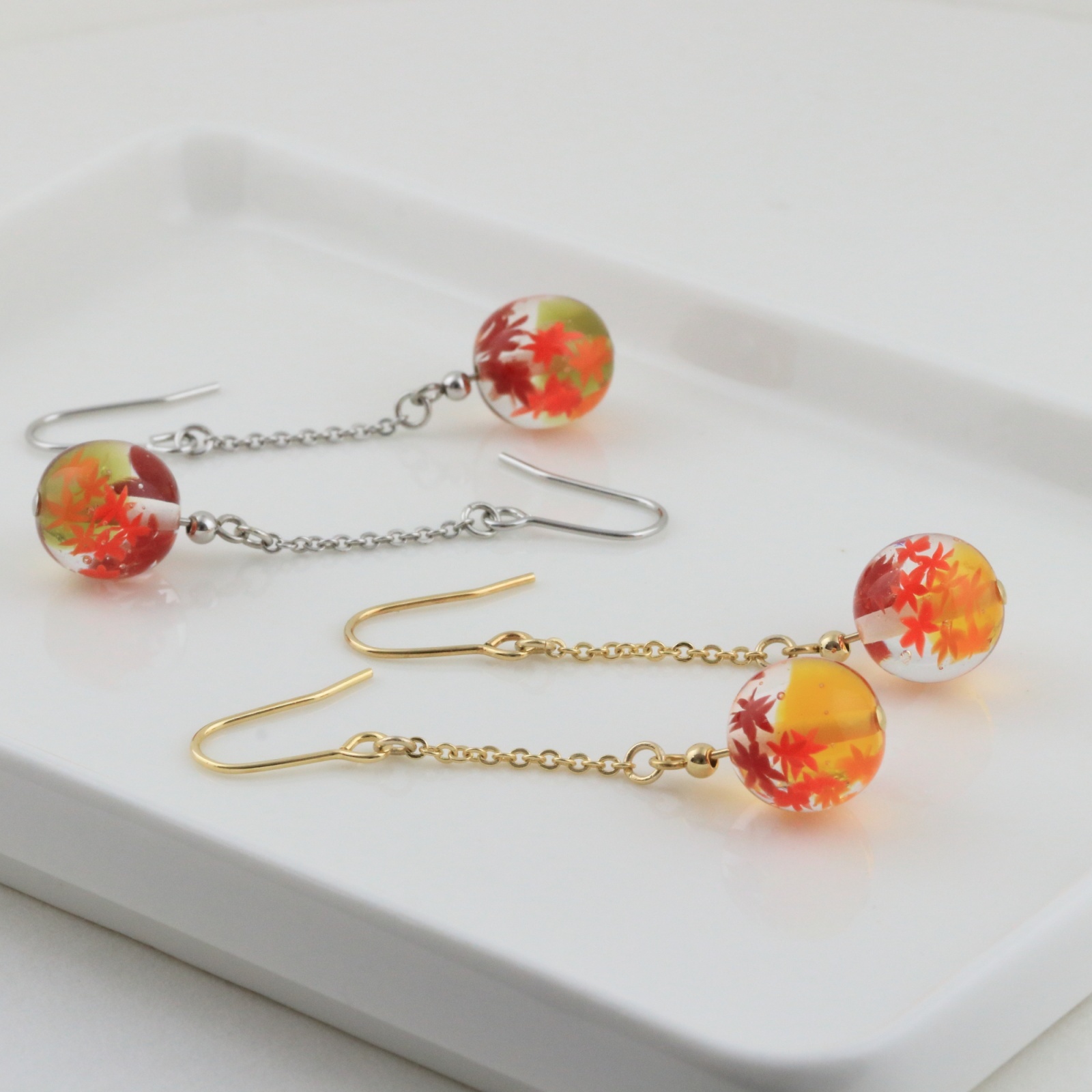 にじいろもみじ|秋の七色グラデーションで描くミニアチュール〜チェーンピアス〜【イヤリング・ピアス変更可】